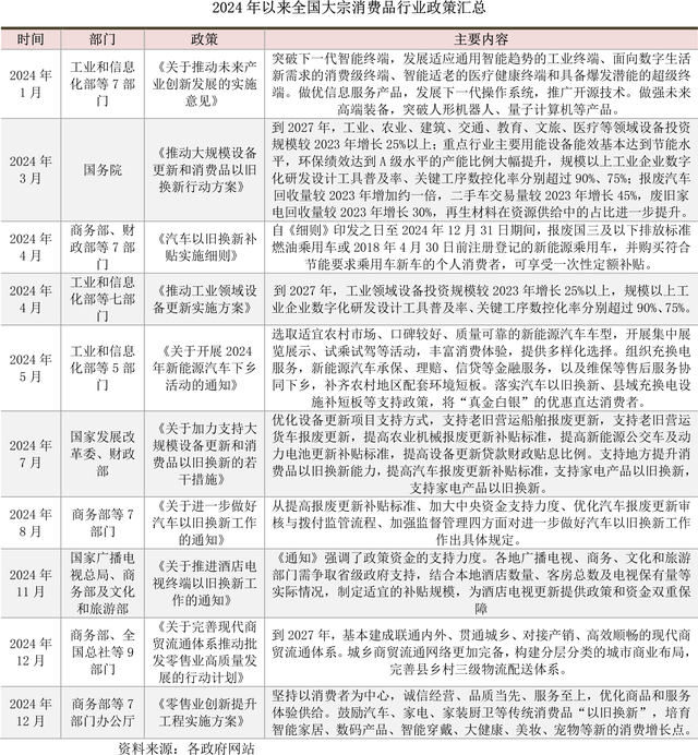 2024年,我国政府着眼于经济高质量发展大局,在大宗消费领域积极布局,出台了一系列政策。一是大力推动设备更新,拉动投资增长;二是积极开展消费品以旧换新行动,激发消费活力;三是着力推进标准提升行动,发挥标准牵引作用。