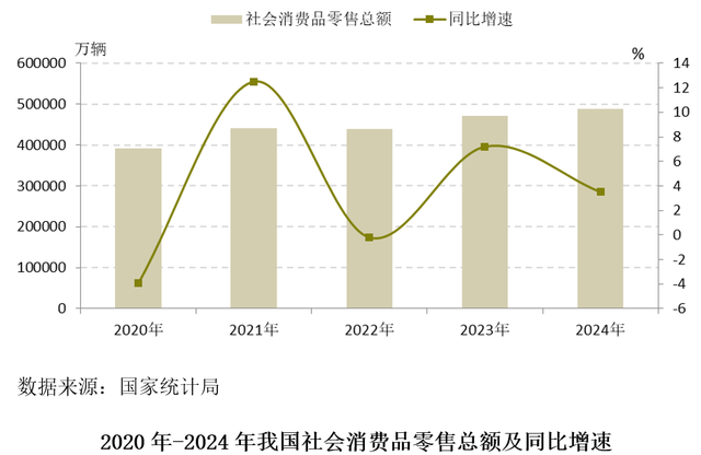 2024年,我国“两新”政策成效显著,带动大宗耐用消费品销售额超1.3万亿元,全年社会消费品零售总额同比增长3.5%。汽车领域以旧换新数量超680万辆,带动销售额达9200亿元;新能源乘用车国内市场渗透率从6月起连续7个月超50%,全年渗透率达47.6%。家电领域,超3700万消费者购买八大类家电超6200万台,销售额达2700亿元;9月起家电和音像器材零售额增速连续4个月保持20%以上,全年同比增长12.3%。
